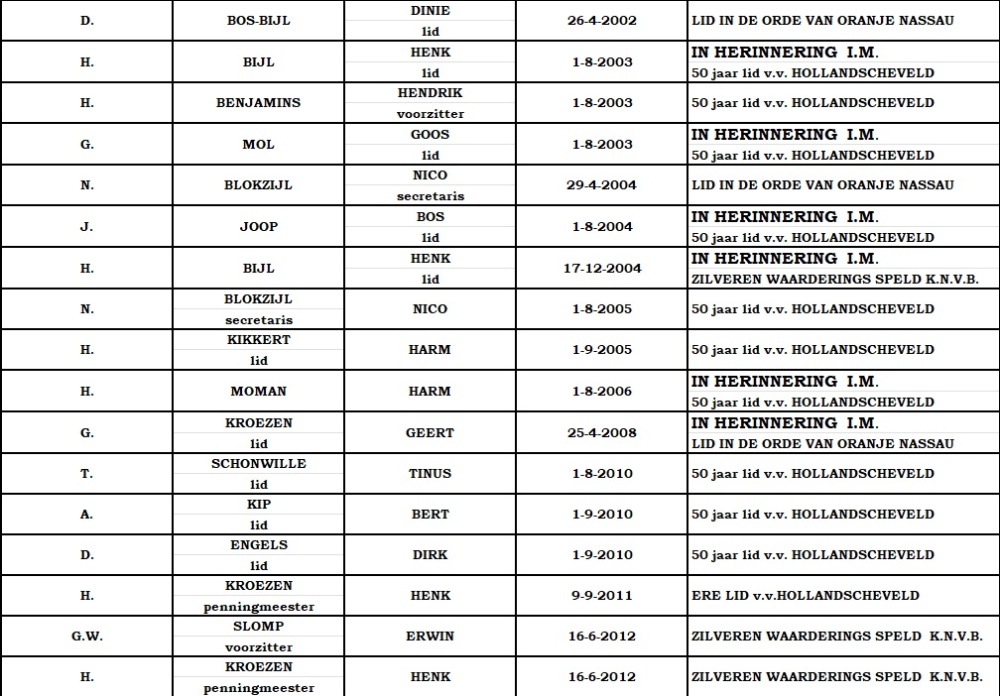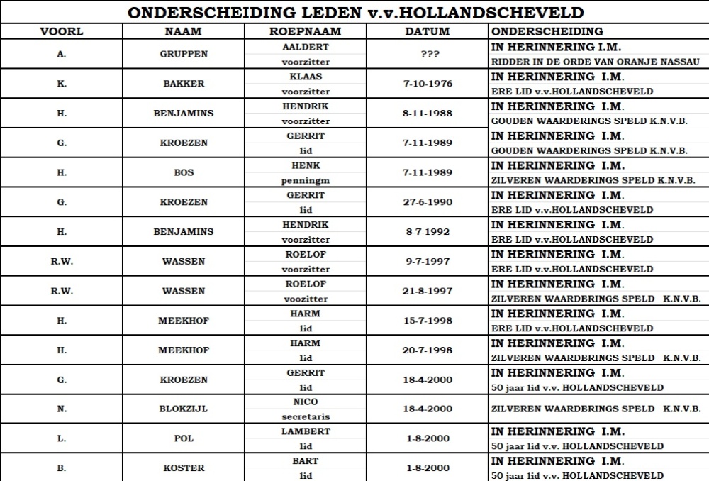 ONDERSCHEIDING LEDEN v.v.HOLLANDSCHEVELD