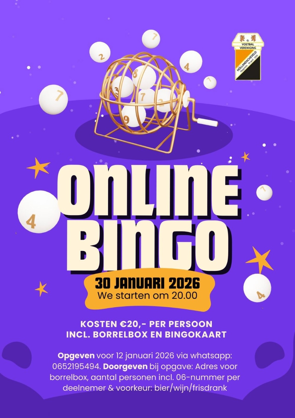 Op vrijdag 30 januari vanaf 20.00u. Voor €20,- per persoon doe je al mee.
