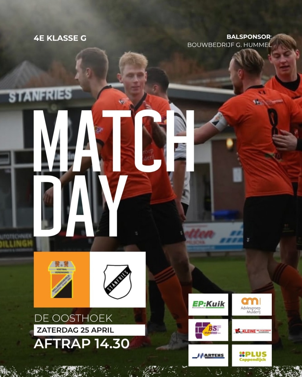 - Hollandscheveld 1 - Stanfries 1, Sportpark 'de Oosthoek' te Hollandscheveld. Aanvang 14:30u